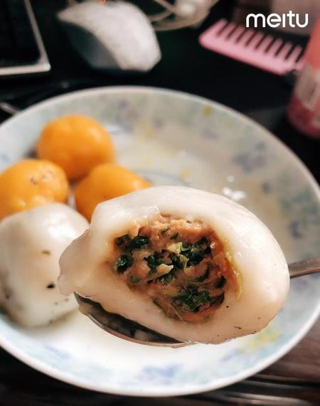 3.荠菜肉汤圆:上海本地人喜欢自己做肉馅的汤圆,馅料调制和荠菜饺子是一样的,就是外皮用的糯米粉,包成圆圆的汤圆,吃起来的味道有点像在吃荠菜肉饺子和馄饨。偶尔吃几口还是不错的,至少不会腻,对于吃习惯了芝麻汤圆的人来说,可能会觉得有点怪怪的。