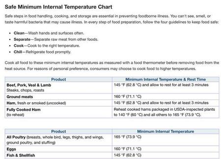 结论:美国农业部的推荐,鱼虾贝类等水产品需要加热的最低温度是,内部温度至少达到62.8℃。