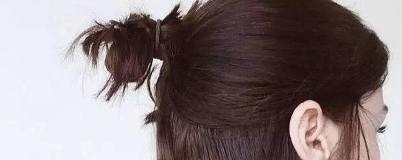 第一步:先用将刘海预留出来,然后把全部的头发集中后脑用橡皮筋扎起来,并用对折半扎成简单的丸子。