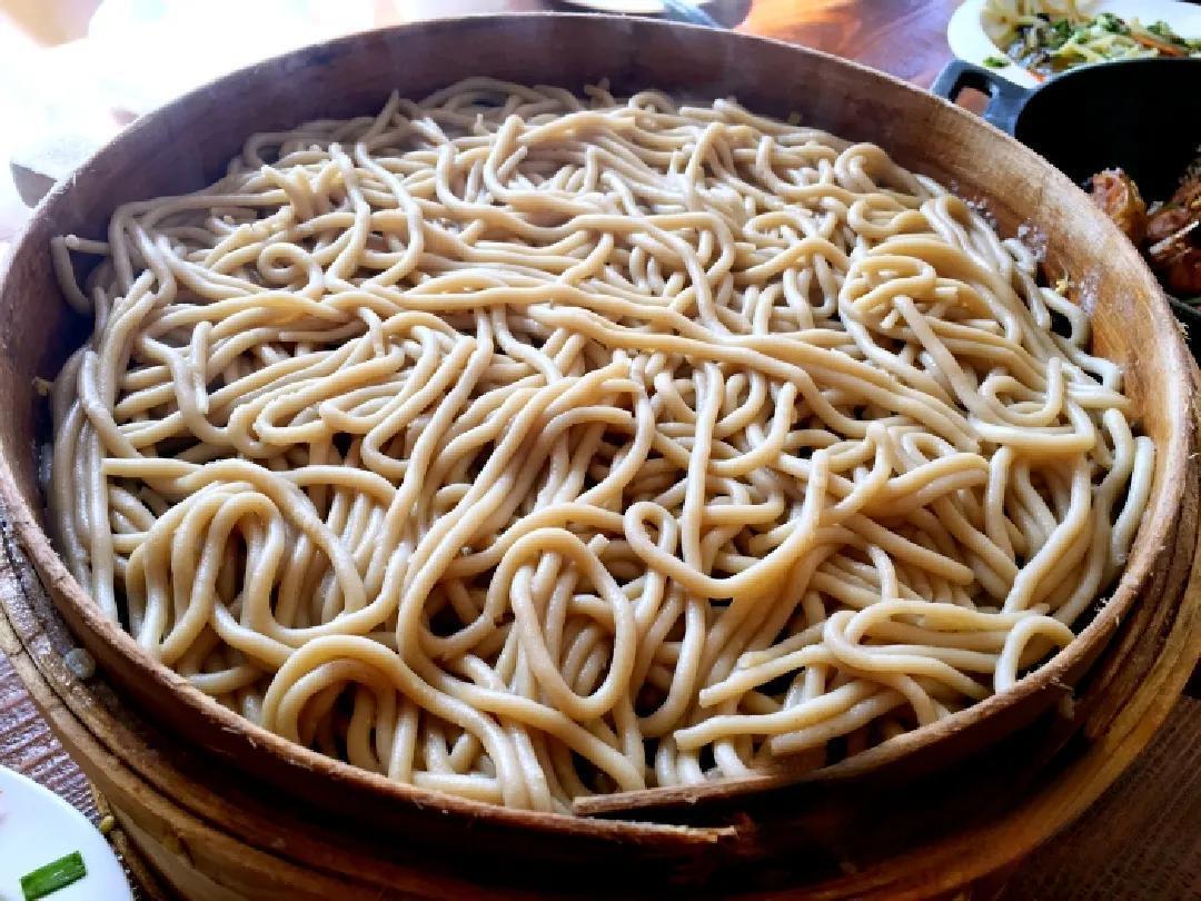 从呼市翻过大青山就到了武川县了,这里是全国闻名的莜面之乡。如果武川莜面甲天下,那么庙沟莜面便可甲武川了。到这里,不要错过弓二莜面馆,它不仅有美味的莜面,还有精选的羊肉和蔬菜。这里的大师傅都是县级以上的非遗法定传承人,手工制作的莜面品相极佳,配料传统,汤料、凉菜非常地道,成为当地响当当的莜面美食品牌。来自锡林浩特和包头地区乃至山西北部地区的食客为此特地而来。非常期待的是,客人们对这个小小的莜面馆给予的点赞,让这一代莜面制作人,把这个品牌继续传承下去。