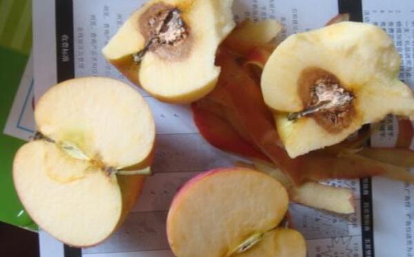 苹果烂心普遍为苹果霉芥蒂,可假如只烂心表面没烂,那便没有是霉芥蒂,该症候缘故为:气温高,苹果新陈代谢兴旺,无氧呼吸效率巩固,发生了洪量的酒精,而适量的酒精会对于细胞发生迫害,截止便是形成苹果烂心。