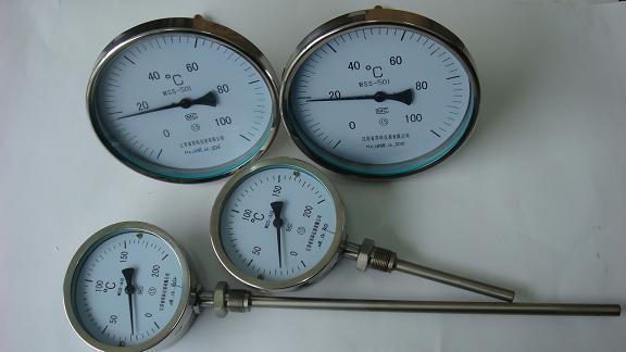 指针式温度计工作原理:利用两种不同金属在温度改变时膨胀程度不同的原理工作的。主要的元件是一个用两种或多种金属片叠压在一起组成的多层金属片。为提高测温灵敏度,通常将金属片制成螺旋卷形状。当多层金属片的温度改变时,各层金属膨胀或收缩量不等,使得螺旋卷卷起或松开。由于螺旋卷的一端固定而另一端和一可以自由转动的指针相连,因此,当双金属片感受到温度变化时,指针即可在一圆形分度标尺上指示出温度。
