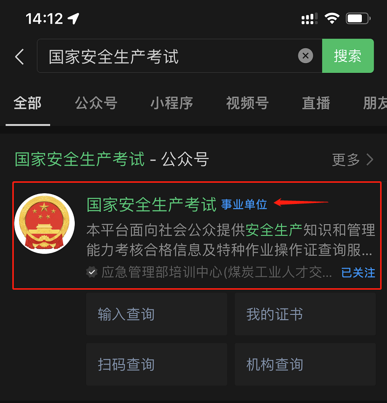 第二步:输入“国家安全生产考试”,然后点击搜索。