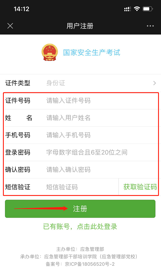 第六步:按照要求,输入相关信息,然后获取验证码,填好后,点击“注册”。