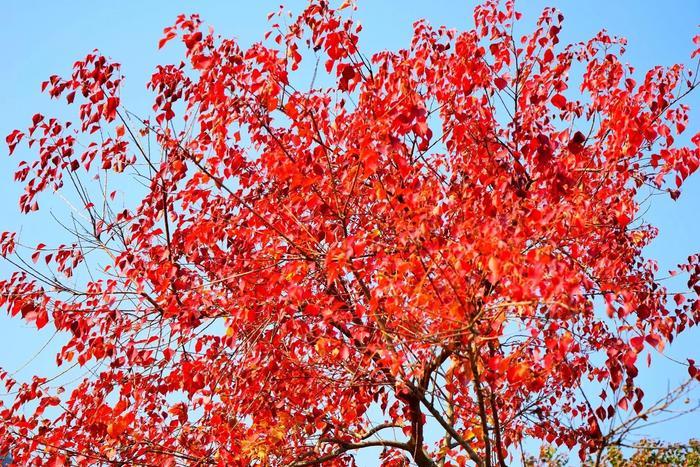 乌桕分布全国各地,平常作为绿化树种,能够对抗空气当中有毒气体,植株全身都有小毒。