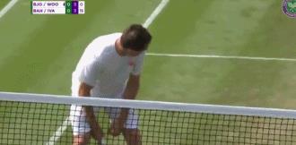 在一场温网名宿双打邀请赛上,瑞典老将比约克曼被搭档伍德布里奇高压击中头部,随后他看了看观众,立马痛苦倒地翻滚两圈。更惊奇的是,见比约克曼久久倒地不起,作为对手的巴赫拉米和工作人员还夸张地进行紧急救治,对着比约克曼一顿心肺复苏和人工呼吸,惹得全场球迷笑声不断。