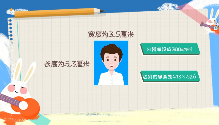 二寸照片的长度为5.3厘米,宽度为3.5厘米,当分辨率设成300dpi时,达到的像素是413×626。照片的尺寸通常以英寸为单位,1英寸约等于2.54厘米。