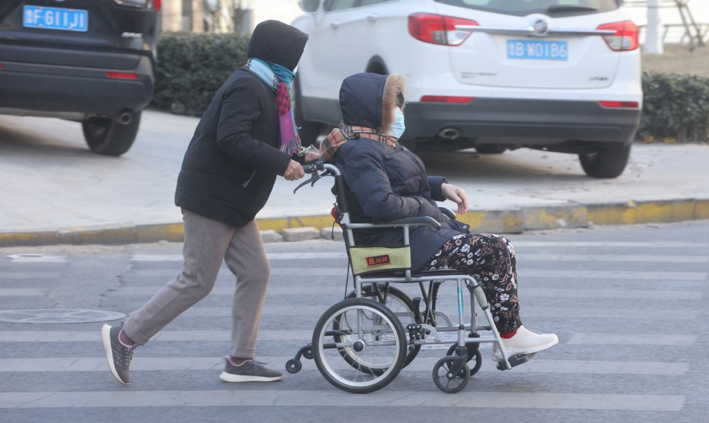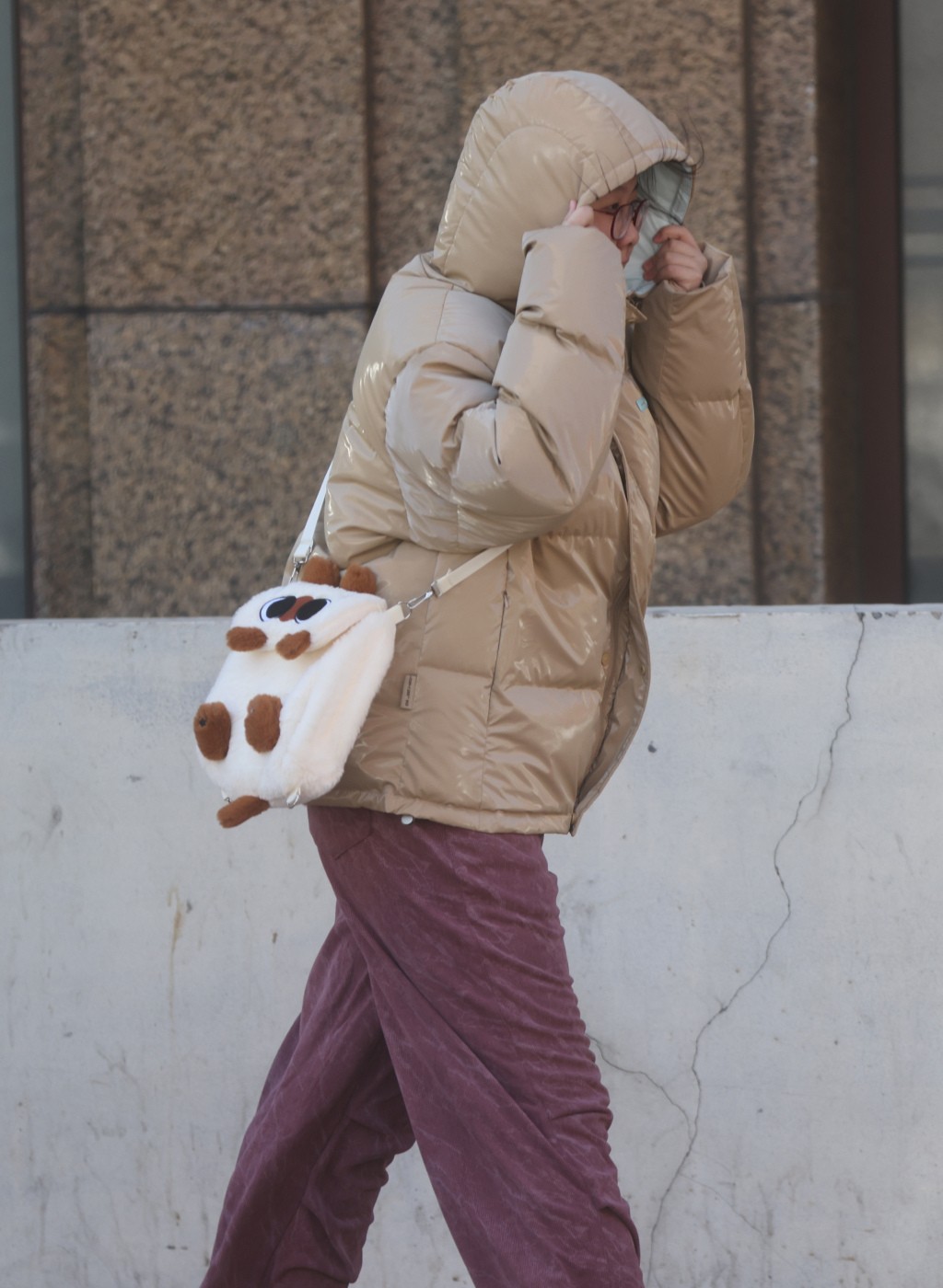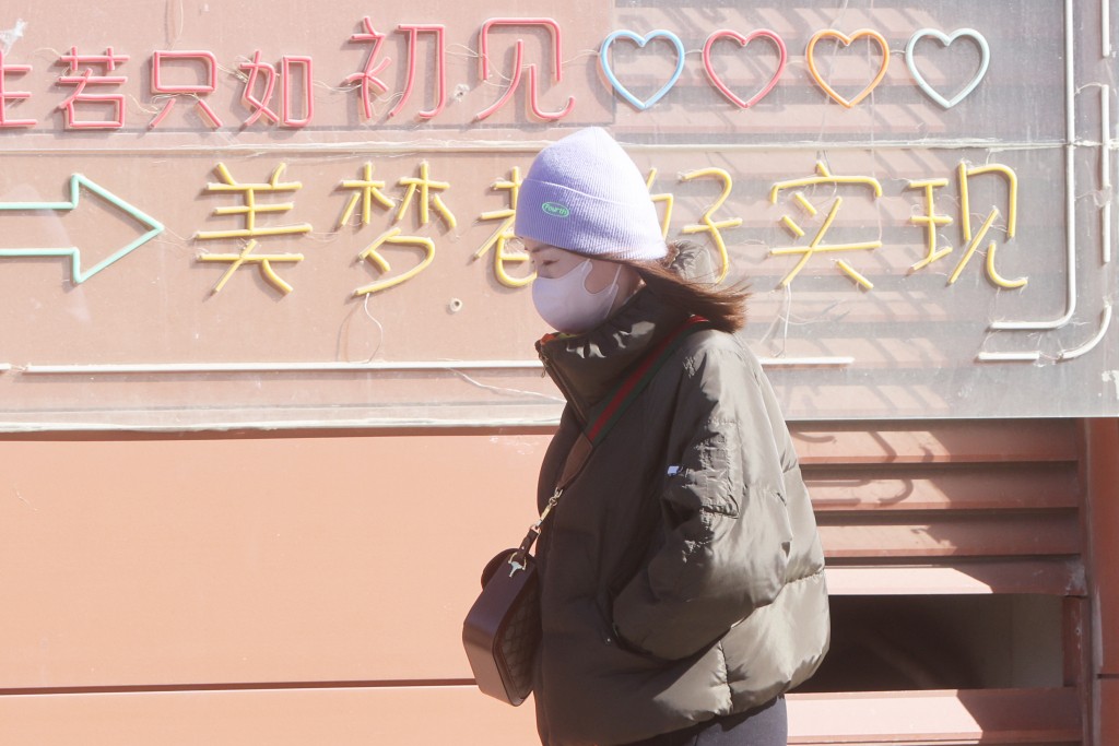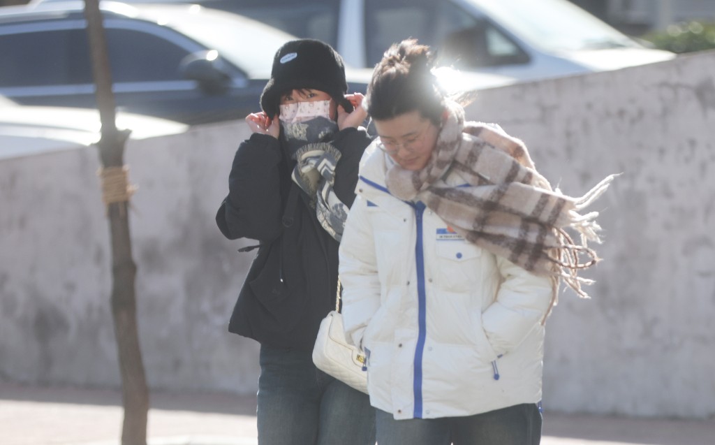 2月7日,青岛户外寒风呼啸,凛冽的大风吹得路人瑟瑟发抖,虽然全身捂得很严实,但是还是感受到了寒意。