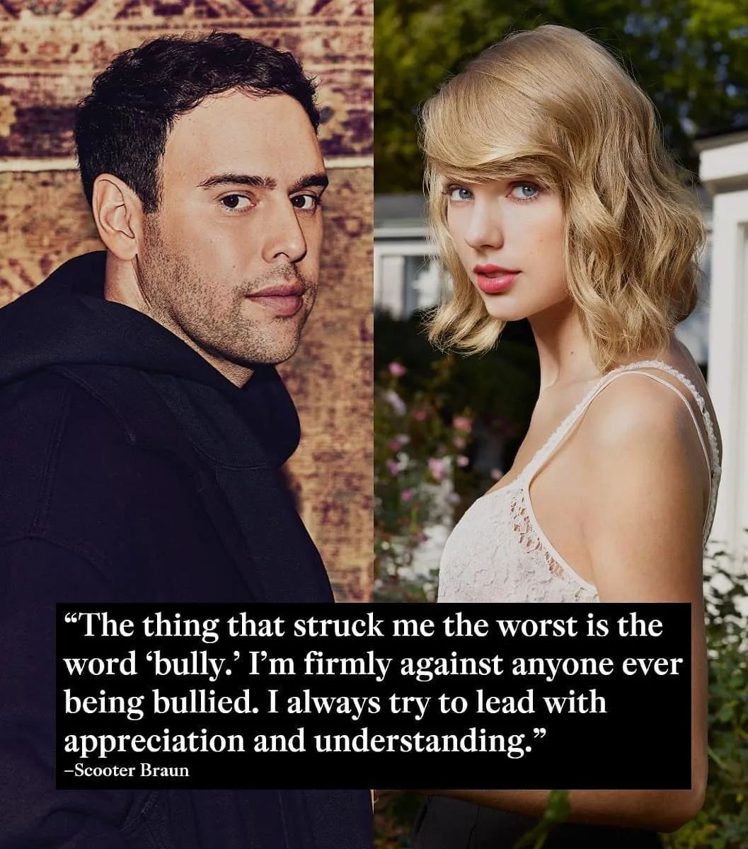 本次,斯库特·布劳恩在杂志里的采访谈及了霉霉泰勒·斯威夫特(Taylor Swift)以及她掌握了霉霉前五张唱片版权的事情。