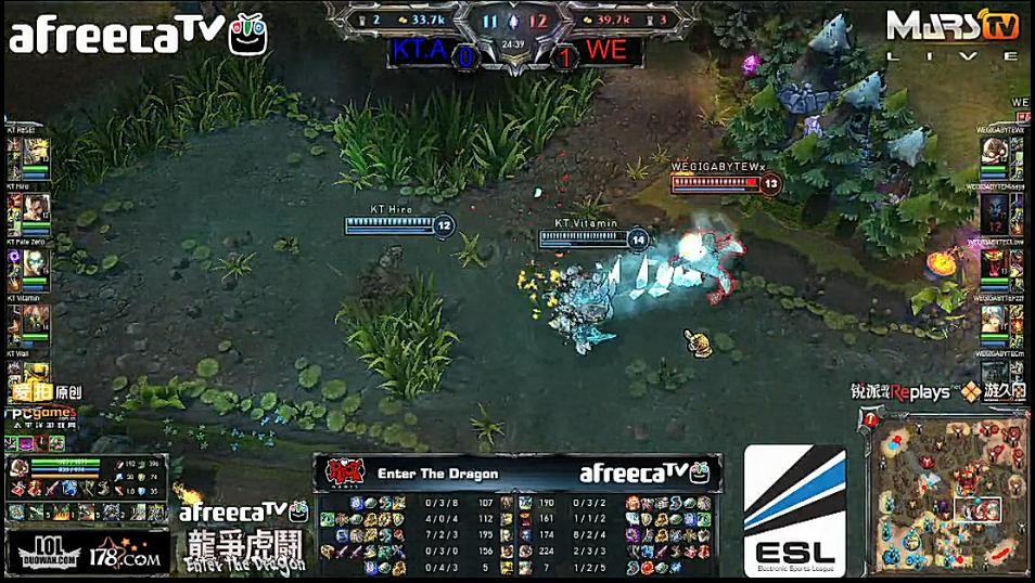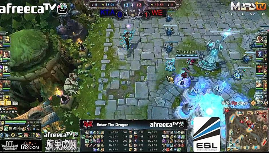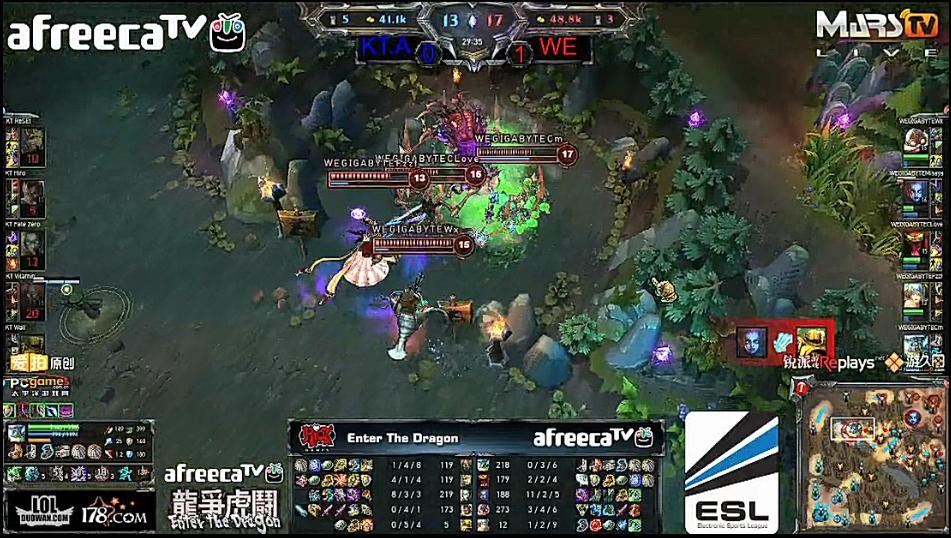 然后等到直播画面变成比赛画面时,WE仅仅领先KT.A不到3k经济,WE中路也被KT.A击破。