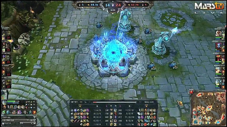 时间来到24分36秒,当时WE领先KT.A将近6k经济;在出线掉网的情况下,KT.A战队先是击杀了微笑的飞机和厂长的大虫子;然后画面转到了主持间。