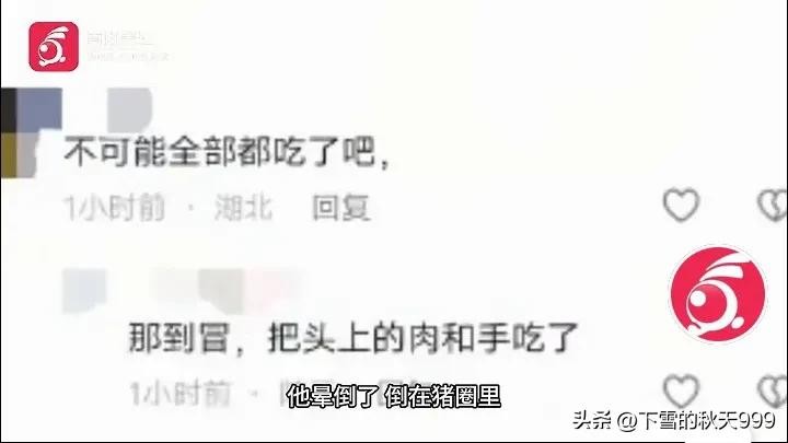 不久之后家里面猪没有东西吃了直接将大爷的头上的肉和手吃了!
