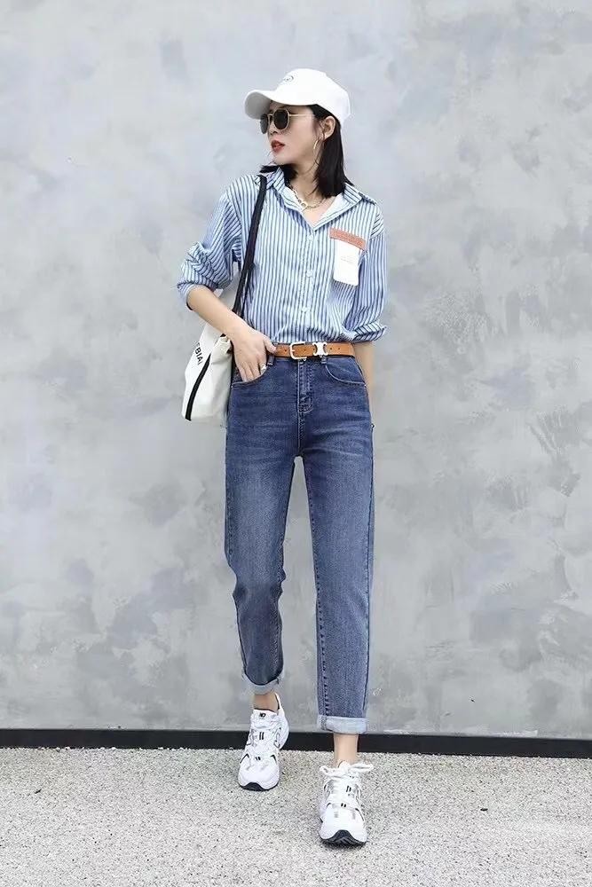 老爹裤一般裤型更加直筒一些,也就是上大下小的趋势不那么明显,更多的用在牛仔裤上,近两年也是比较受大众喜爱的款型。