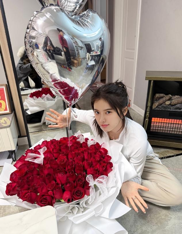 吴艳妮疑似微博公布恋情 名牌项链+一大捧玫瑰!遭遇上门求婚?