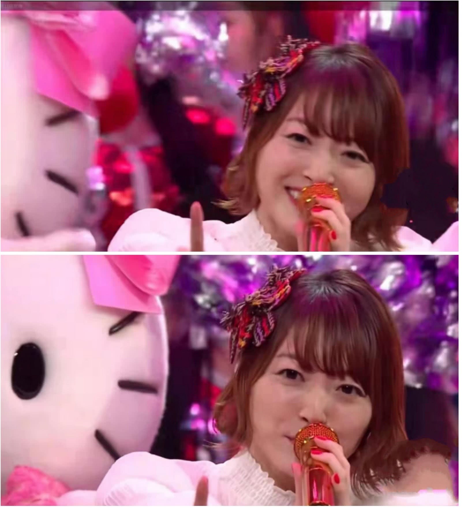 《恋爱循环》这首歌曲也完成的很好,伴舞们的互动还有可爱的helloKitty玩偶,都让现场的粉丝们感到十分的高兴,现场观众们的热情高涨,而这时花泽香菜就准备要完成一个Ending动作了,而且这时镜头也拉近对准香菜的脸,不过香菜刚准备要露出笑容的时候,好像突然想起了什么,又把笑容收了回去。
