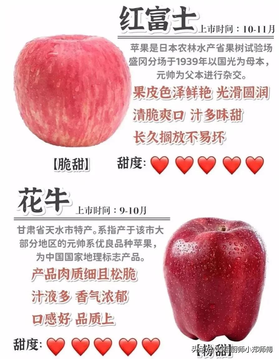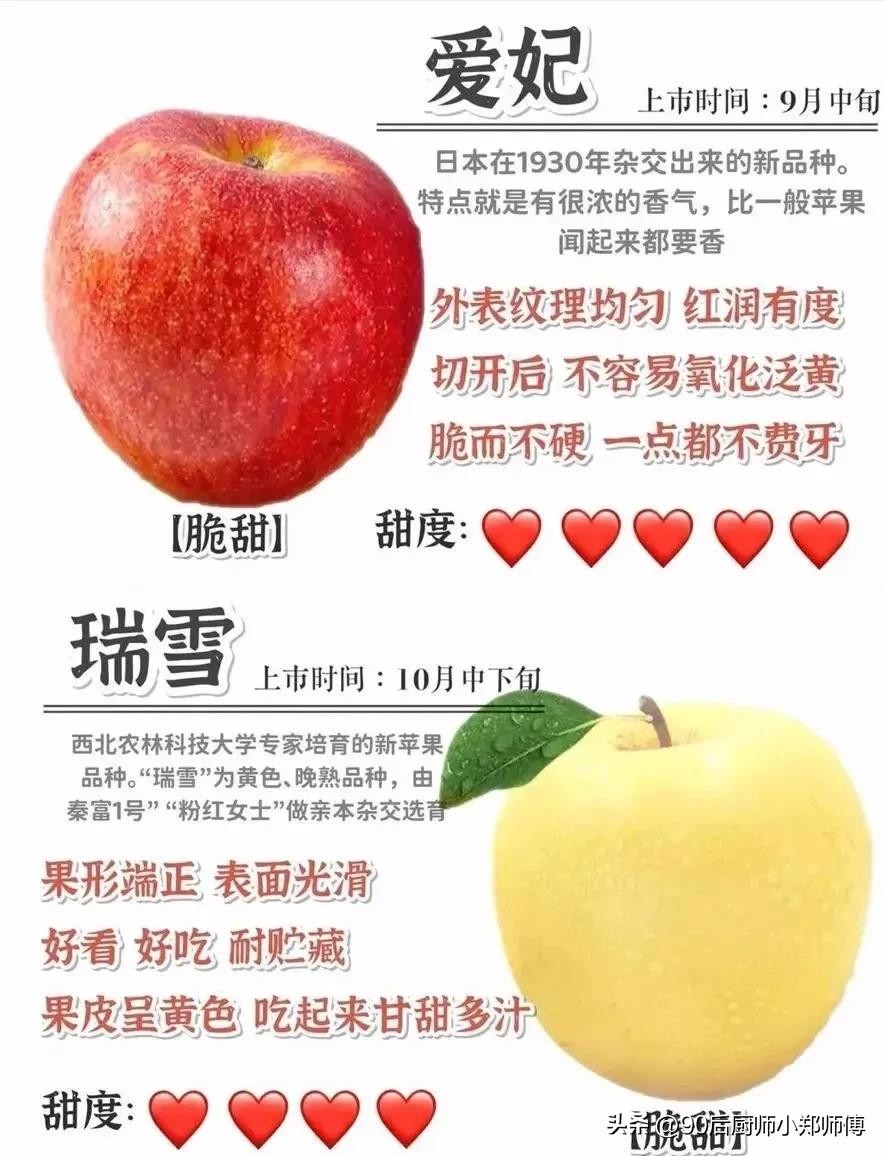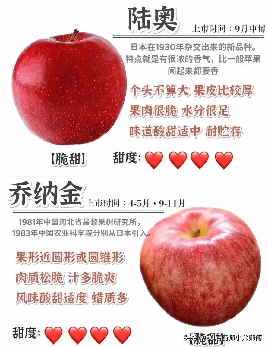 大家好我是厨师小郑师傅,苹果这个水果大家都喜欢吃,那你知道苹果有什么品种嘛!口感和产地都在那里!看过来今天就分享给你们!