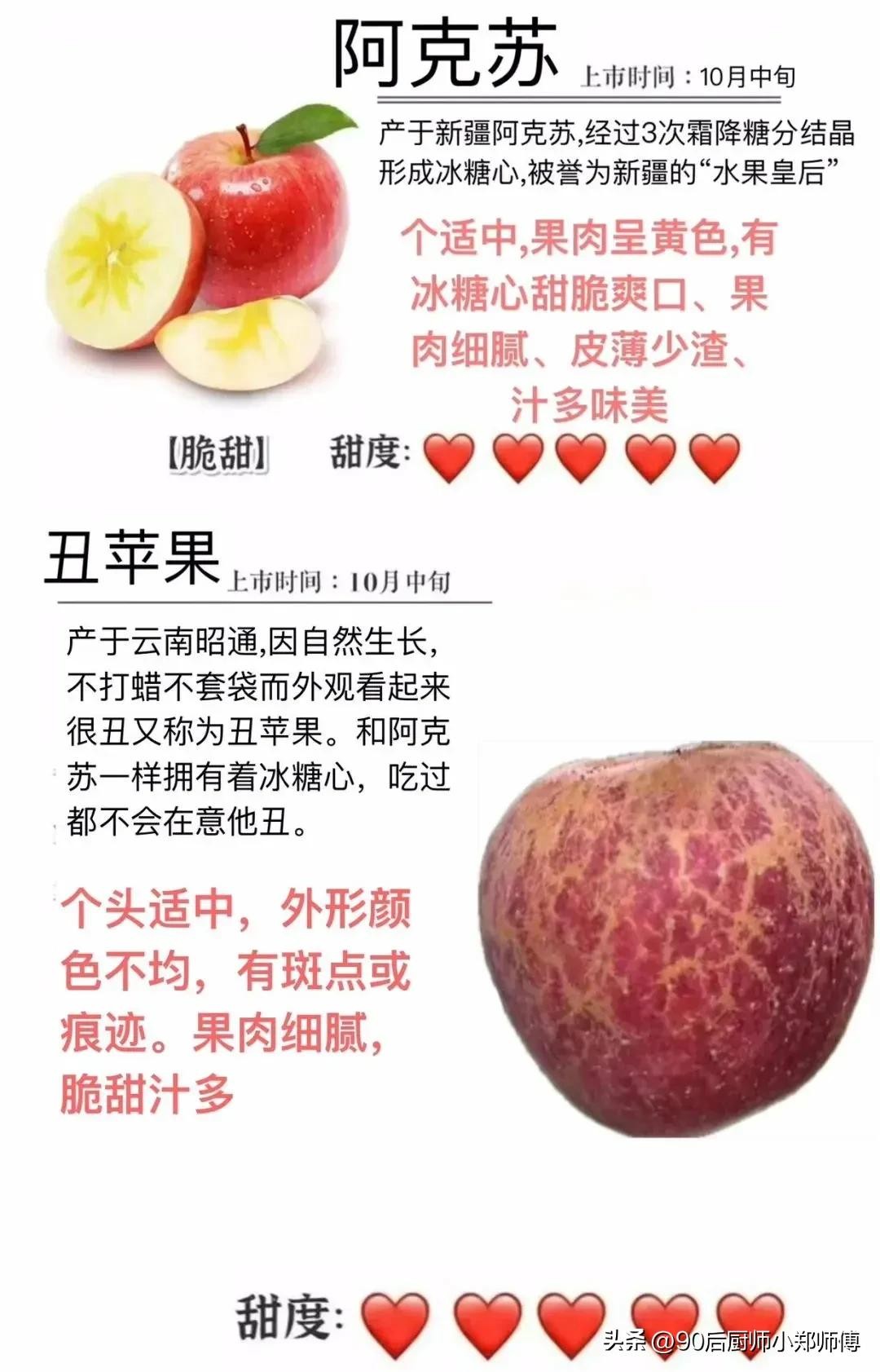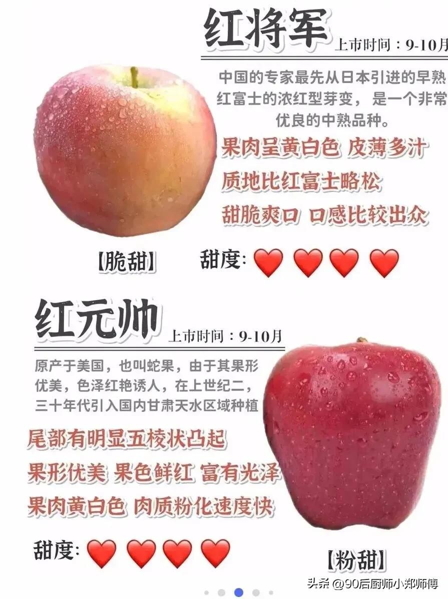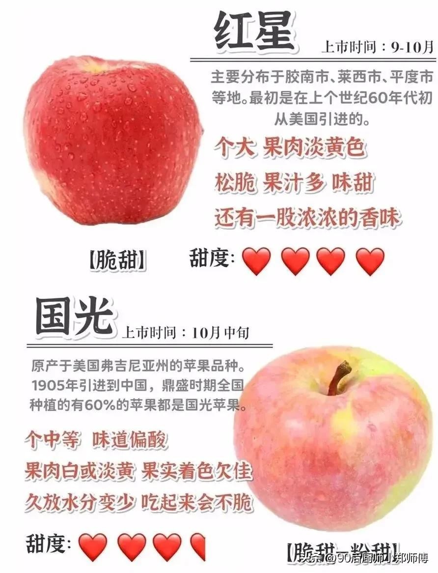 大家好我是厨师小郑师傅,苹果这个水果大家都喜欢吃,那你知道苹果有什么品种嘛!口感和产地都在那里!看过来今天就分享给你们!