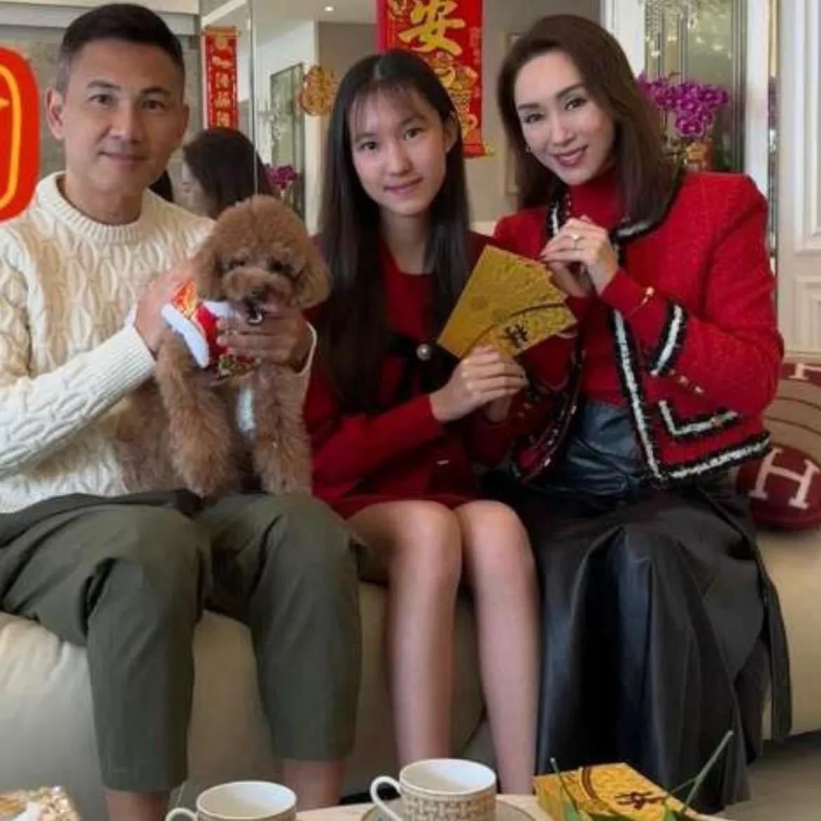 郭可盈晒新年全家福,一家三口同框画面温馨,14岁女儿愈发漂亮