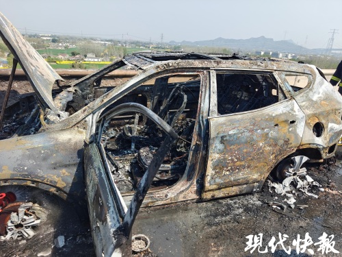 五峰山大桥上一轿车自燃,明火已扑灭无人员伤亡