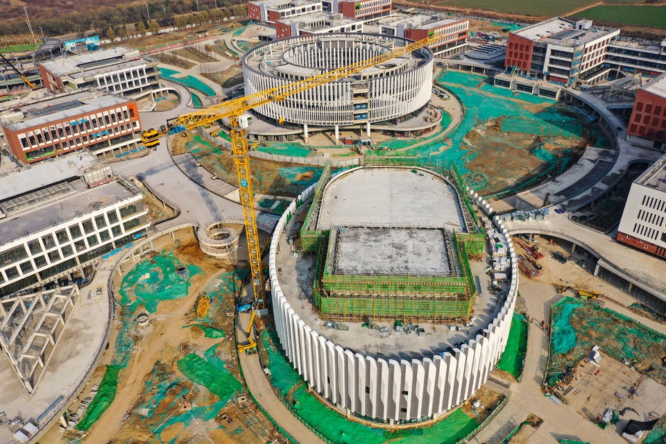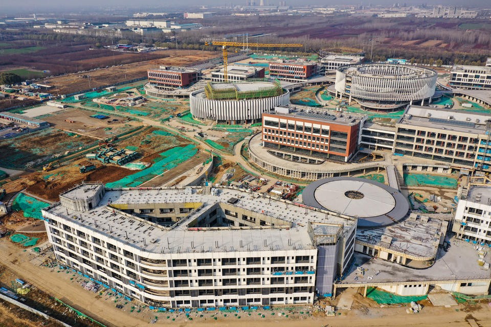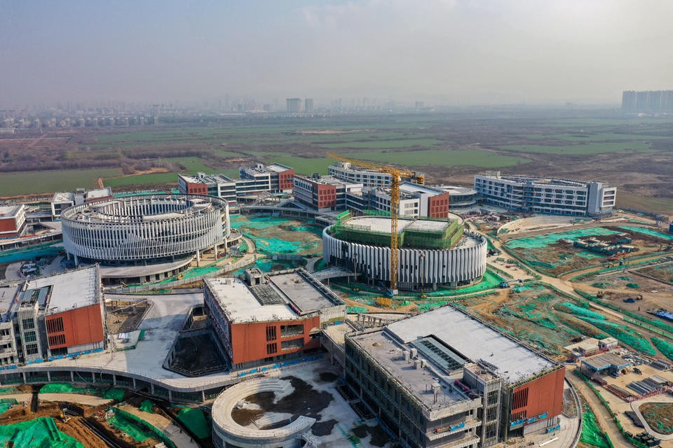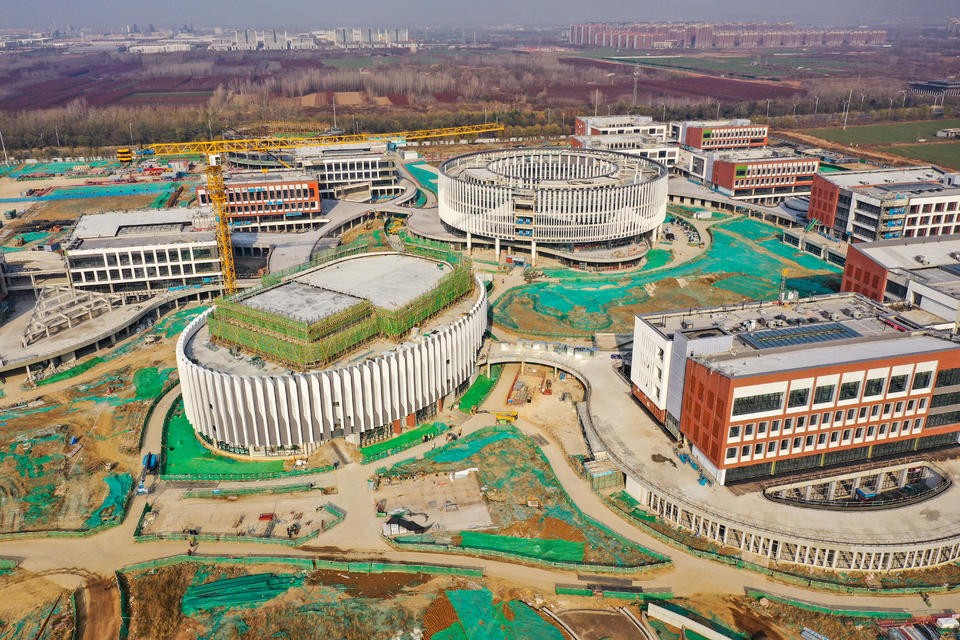 12月6日,航拍济南绣源河西岸的山东大学实验学校工地。与半年前相比,教学楼、实验楼、图书馆等施工进展显著,很多建筑物外墙装修接近尾声,漂亮而壮观的现代化校园雏形初现。