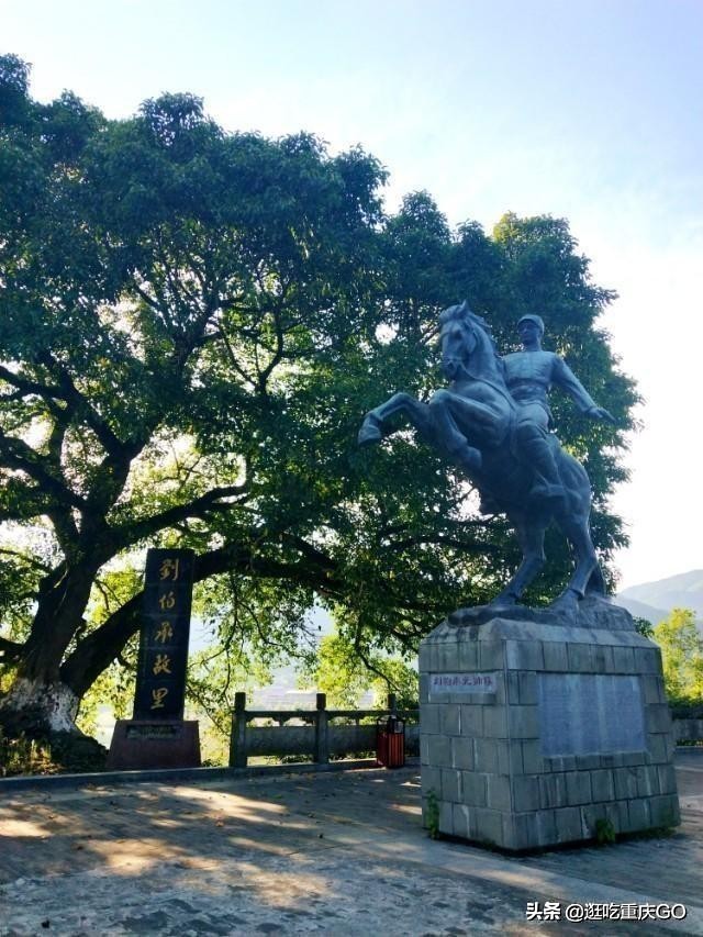 刘伯承故居,位于重庆开州城南28公里处的赵家镇小华山沈家湾。距离故居100米前的两棵参天大树下,矗立着刘帅的骑马雕塑,特别高大威武。