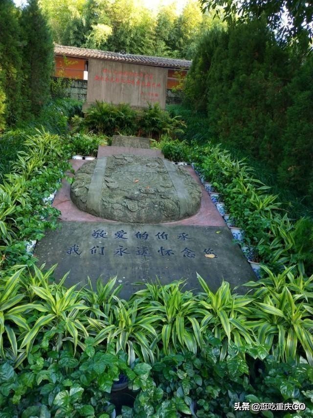 进门后有很长的石梯,走上去就是小陵园,旁边还有两棵黄桷树围矗其间。