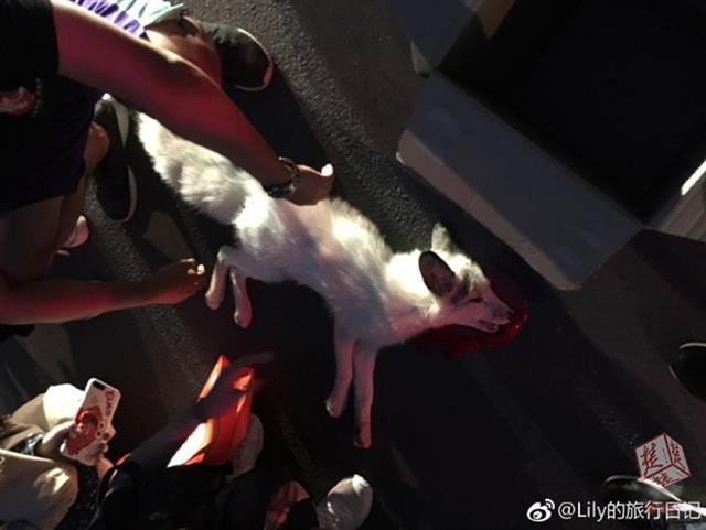 见白狐受伤,现场多位同学纷纷上前将它围住,白狐当时抽搐不已。同学们纷纷拨打多个兽医院电话,但这些兽医院都没有配备救护车。后来,同学们将白狐送往附近一家兽医院。在送医路上,白狐就失去生命。
