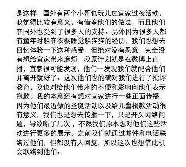 而在昨天上午,当事人男主播@叫蓝胖子发微博回应了该事件,表示称此举为“借鉴国外在宜家过夜活动,并回忆体验童年时在衣橱睡觉躲猫猫的经历,但绝没有恶意,保安一发现就配合离开。对给宜家带来的不便和影响表示道歉。”