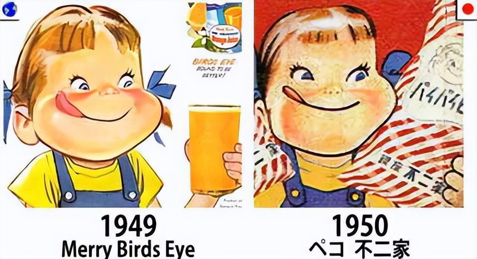 日本老字号食品品牌不二家也曾抄袭美国品牌Merry Birds Eye,几乎一摸一样。相信很多人都看过宫崎骏《风之谷》,其实是参考了法国科幻漫画泰斗墨比斯的作品《ARZAK》,日本著名导演黑泽明的很多作品,几乎是将美国著名电影导演 John Ford的作品,稍微改下换成日本人套上。换句话说原创还是来自美国。佳能相机曾经也多次抄袭莱卡的设计。尼桑的Fairlady也是抄袭法拉利,连名字发音都接近。