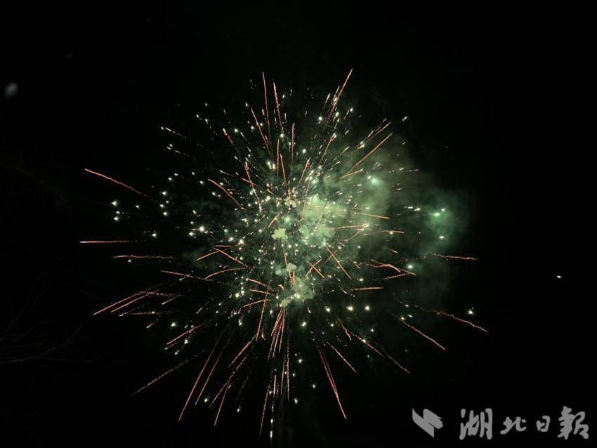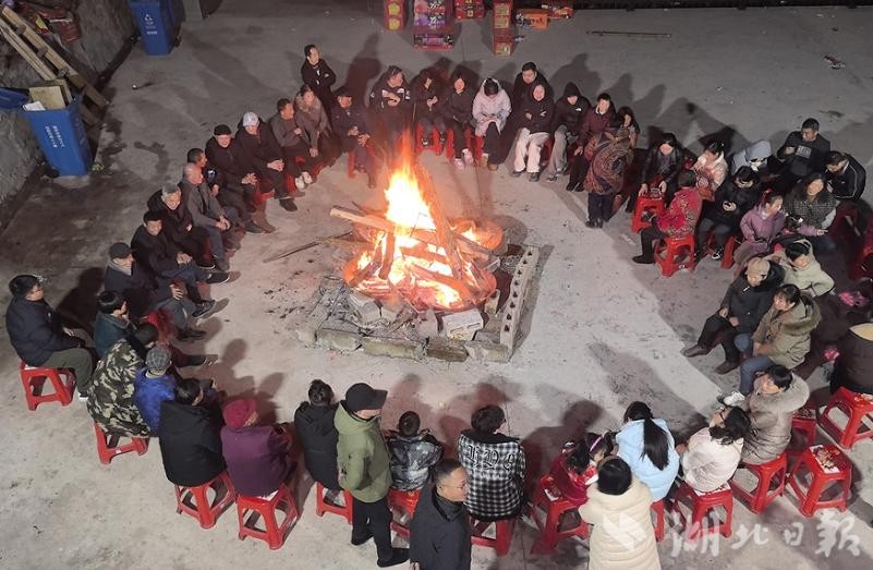烟花璀璨,篝火熊熊。男女老幼谈笑风生,辞旧迎新!(湖北日报客户端通讯员曹征服、黄锋、钟黎明)