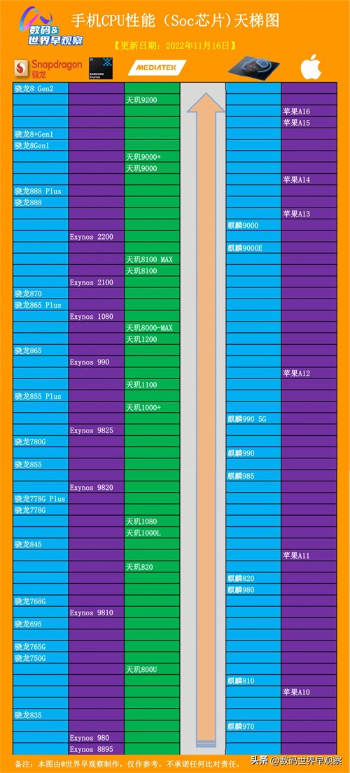 手机cpu天梯图:手机处理器排行榜(2022年11月第2版)