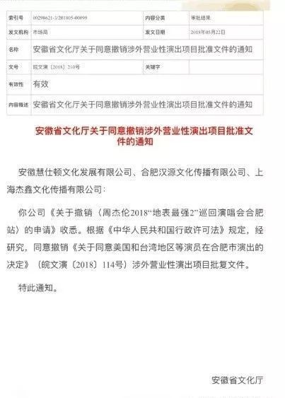周杰伦”地表最强2“巡回演唱会合肥站正式宣布取消