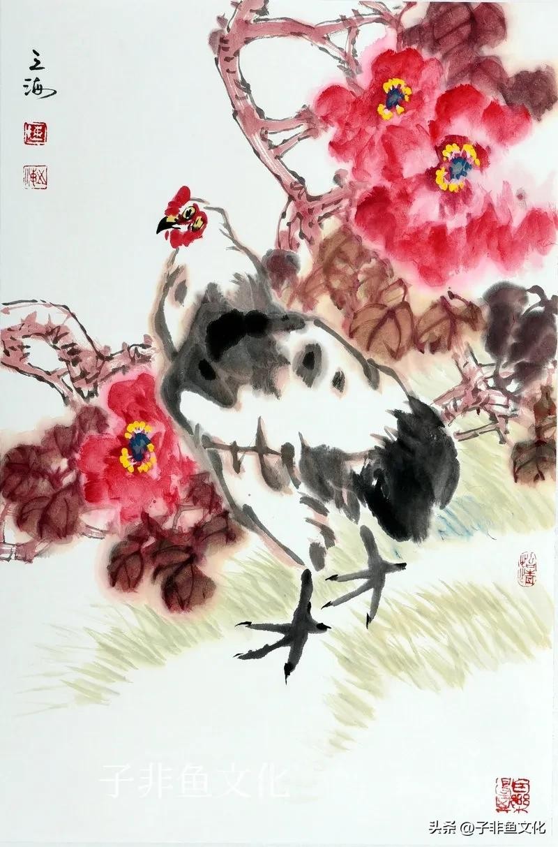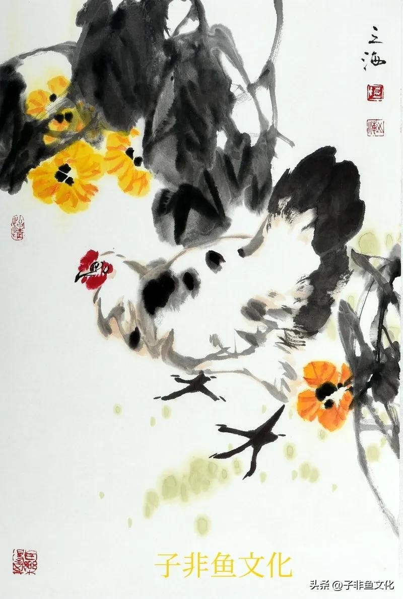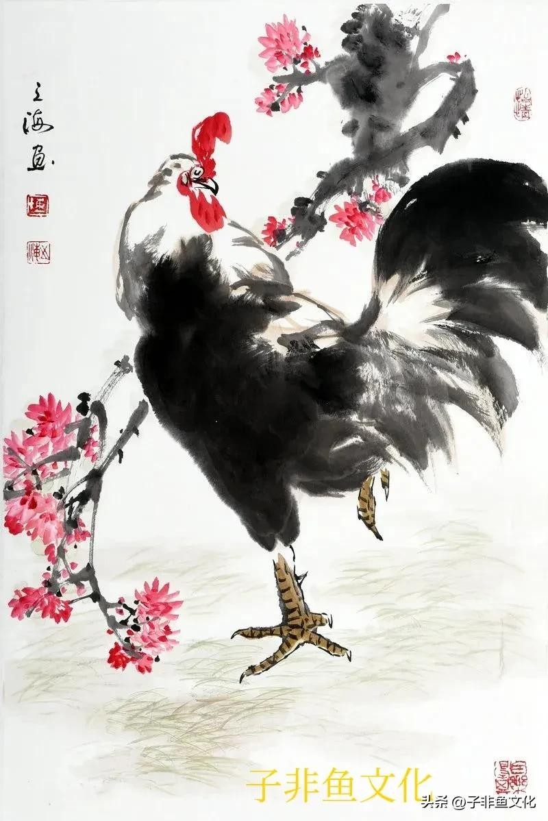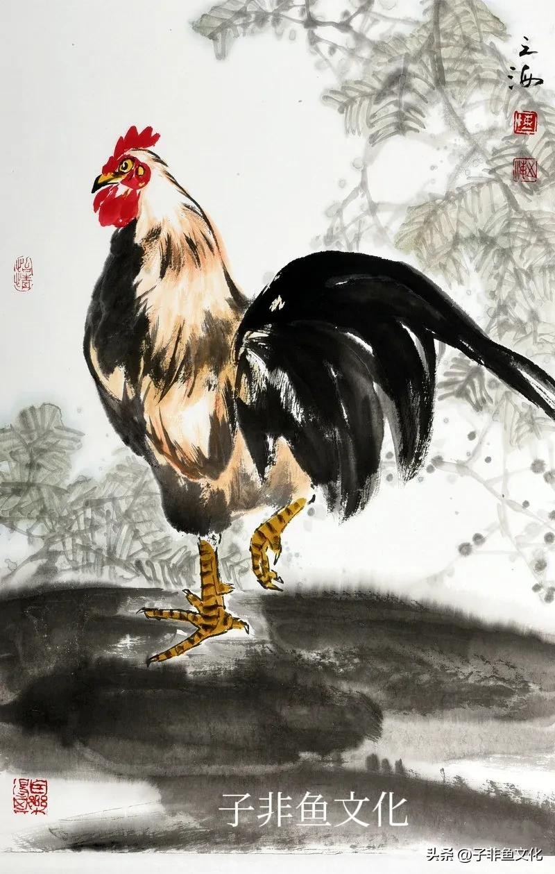 《韩诗外传》云,鸡有五德。古人称鸡有“五德”:“头上有冠是文,脚下雄健是武;临敌敢斗是勇;见食呼友是仁;按时报晓是信。”画家将鸡所具有的动物本能赋予了人类的五种社会属性,颂扬儒家文、武、勇、仁、信这五种伦理品德,中国古代历来强调绘画“成教化、助人伦”的政治功用,尽可能在画中蕴含特定的道德观念和人伦思想。