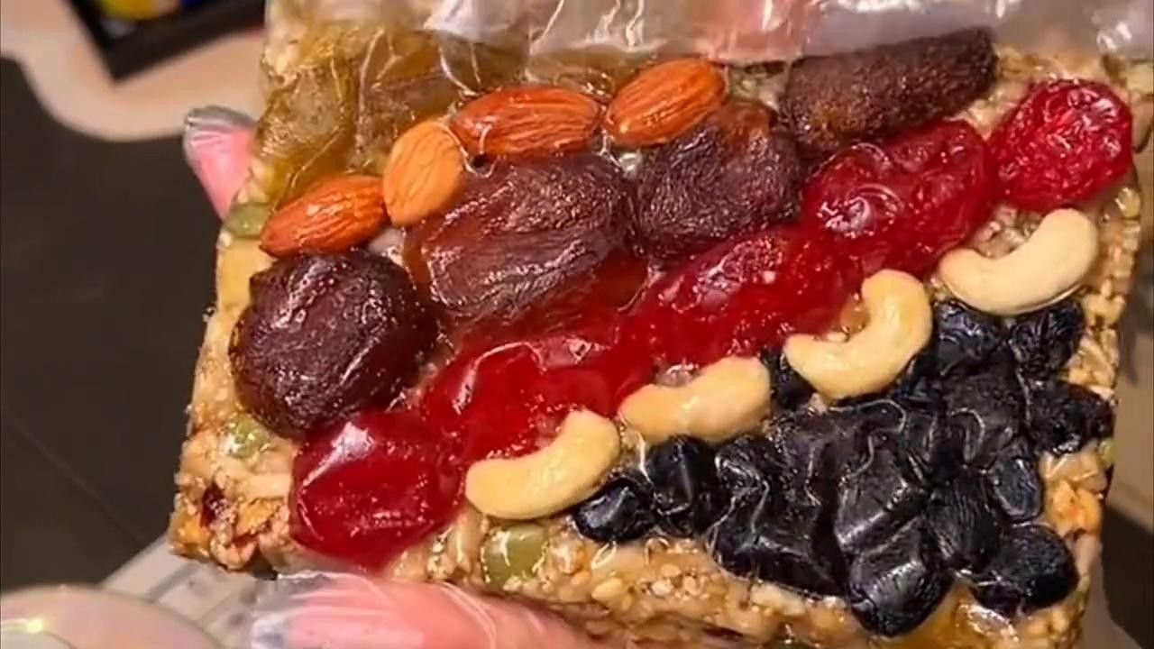 那这货怎么还会存在至今?众所周知,切糕是新疆地区的传统小吃,除了表面的糕体之外,其中最独特的地方就是里面有各种的辅料,包括核桃仁、腰果、巴旦木等等,色香味俱全。因为口感香甜,所以一度深受人们的喜爱。