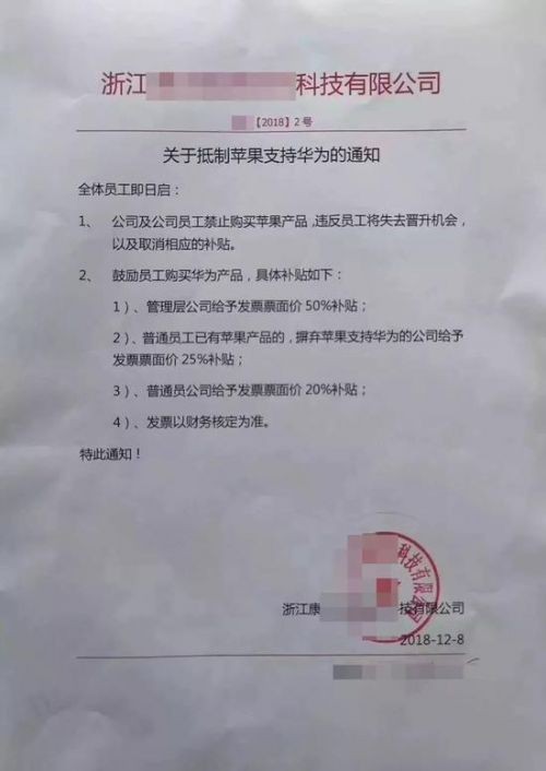 通知中写明:公司及公司员工禁止购买苹果产品,违反员工将失去晋升机会,以及取消相应的补贴。
