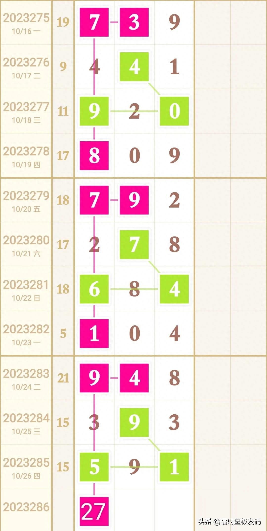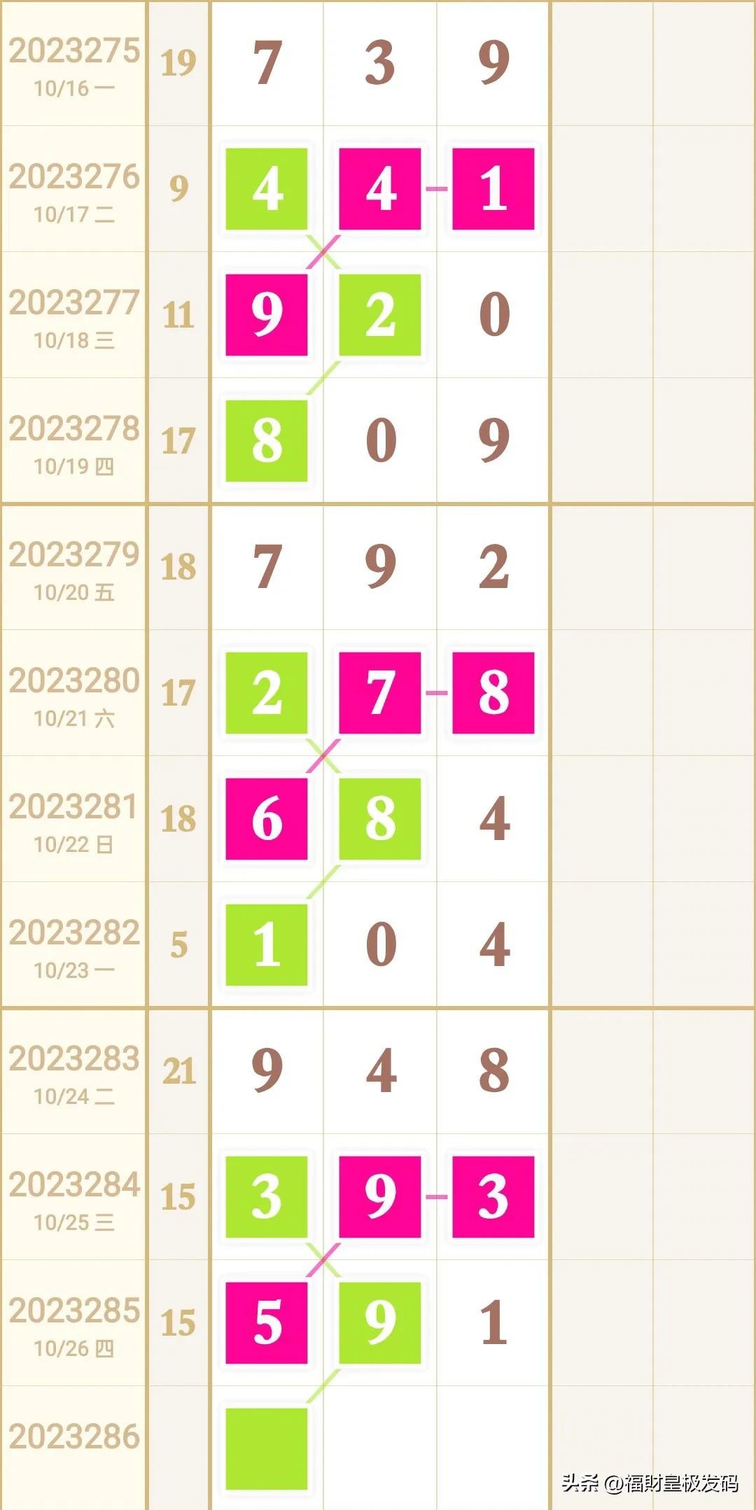 福彩3D23286期规律走势皇极天机泄露版发码推荐(范围码)
