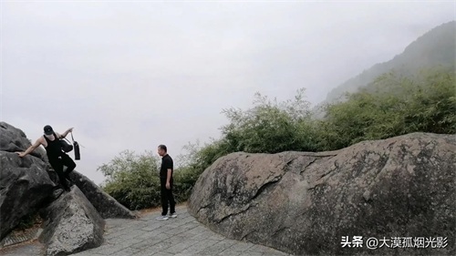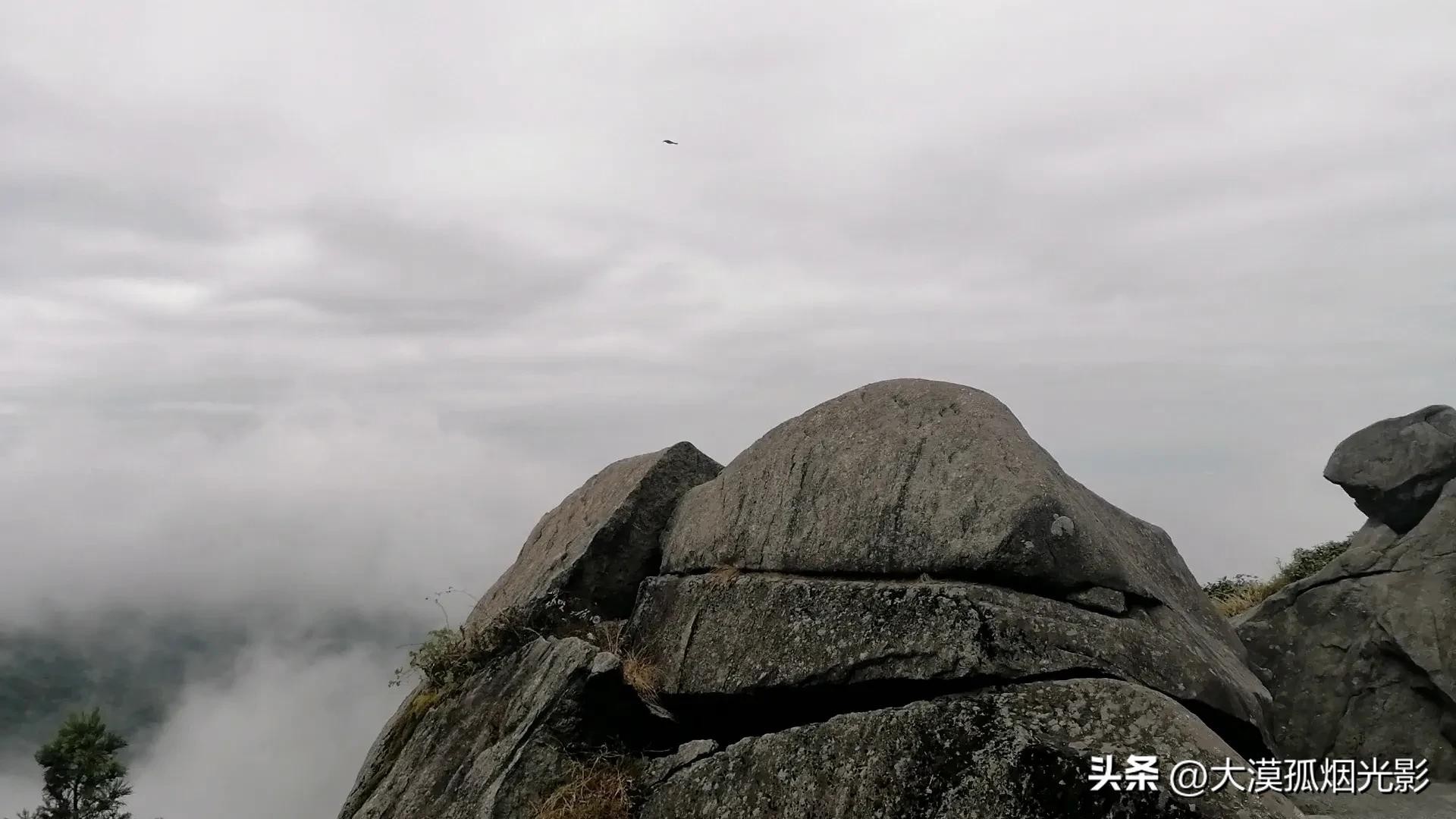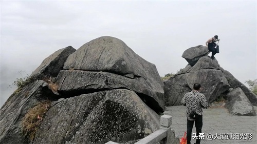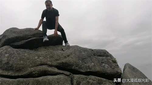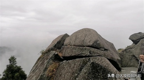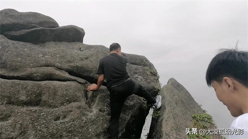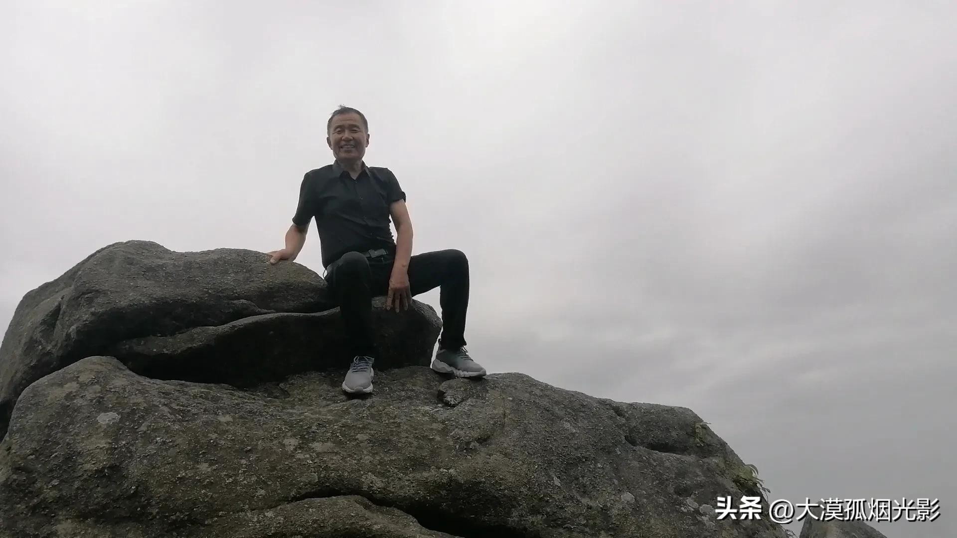 有人爬上身边的巨岩,想再登高些,视野再开阔,尽享仙界美景。等那人下来,我也学着他的样子爬上巨岩。可要站在没有平面的岩顶上就没有那人自如了。我刚一抬头,那白浪青涛就向我扑来,仿佛要将我卷进汪洋大海。我两腿发抖,坐在了岩顶,让儿子给照了几张相,就匆匆地下来了。
