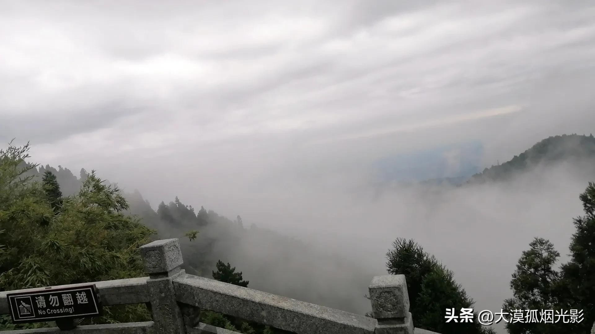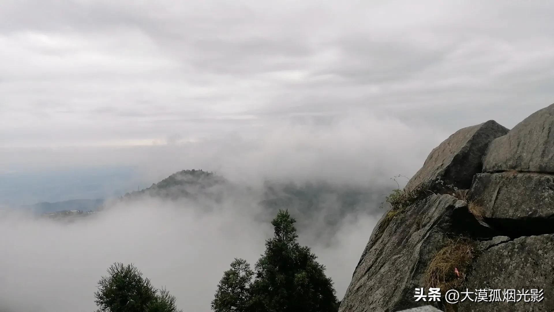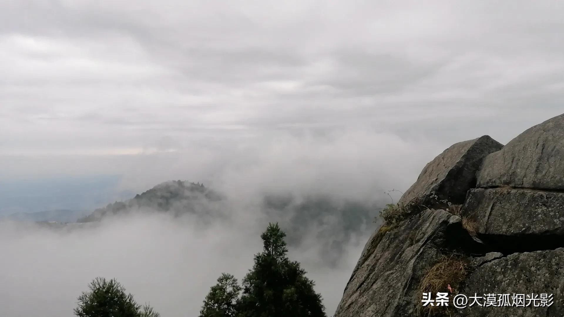 不信,你站在谷边岩石旁眺望,真的会以为自己踏进了仙界。不然,远远地怎么会有海涛涌来?是,那就是海涛,起伏着,汹涌着,翻滚着,甚至要掀起海底,露出深不可测、青黑色的海沟来。可转而一想,不对,南岳属内陆,凭人的目力不可能看到海,我却看到了,而且清晰无比。原来,那是白云青雾的“杰作”,它们搅动山风,将远处的风物全淹没其中,包括其他峰峦。偶尔有一道山梁倔强地挺拔出,隐隐约约,可不就酷似海沟吗?