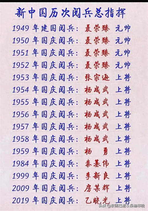 建国以来历次阅兵总指挥
