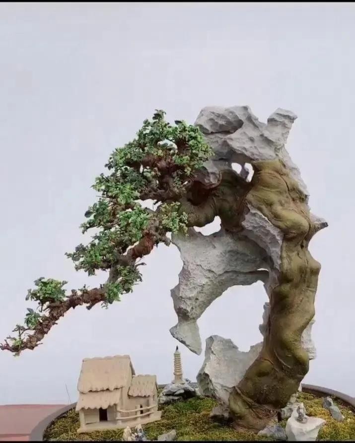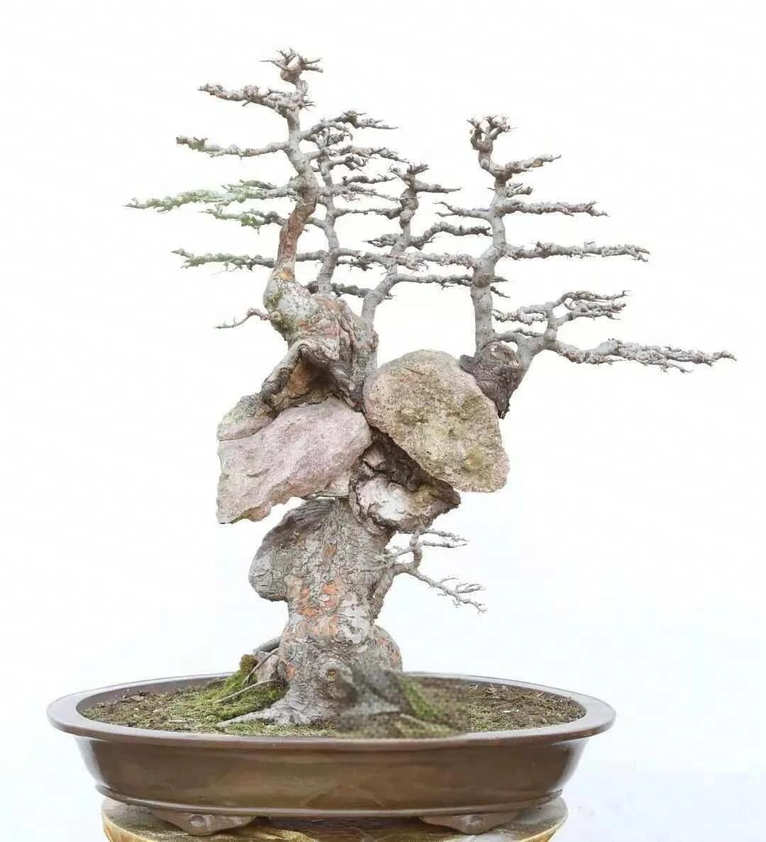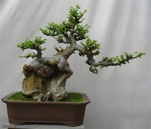 榆树的主干特性,决定了榆树也是最适合做附石的盆景素材,目前盆景界的附石盆景里边,能像榆树一样包石头包这么紧的,少之又少。