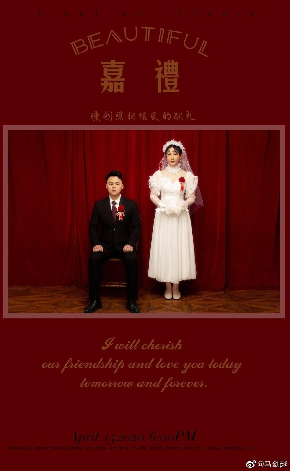 马剑越结婚一周年晒婚纱照表白老公 胸前别红花古典十足