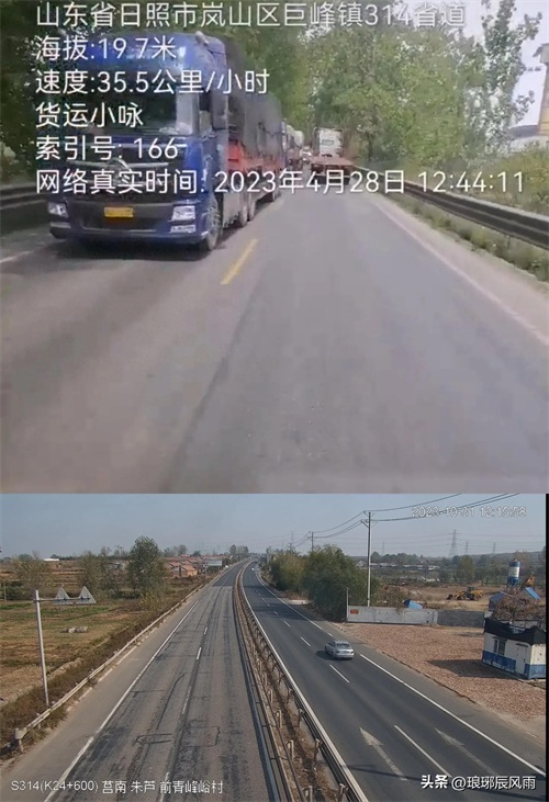 最近有网友问我314省道啥时候扩建?深受其害的网友和市民不在少数,一直困惑着临日两地市民和过往的车辆。从网友口中得知临沂莒南县段路况非常好,双向四+二车道车辆也不是很多,今天我从现场实时监控查看了一下莒南县朱芦镇段10多秒只有一辆过去,而且远远望去也没有车辆。下图两张图片都是中午12点多拍摄的,一张是莒南县朱芦镇另一张是岚山区巨峰镇。差距实在是太大,从图上就可以看出来临沂段时速可以100,日照段50也达不到。