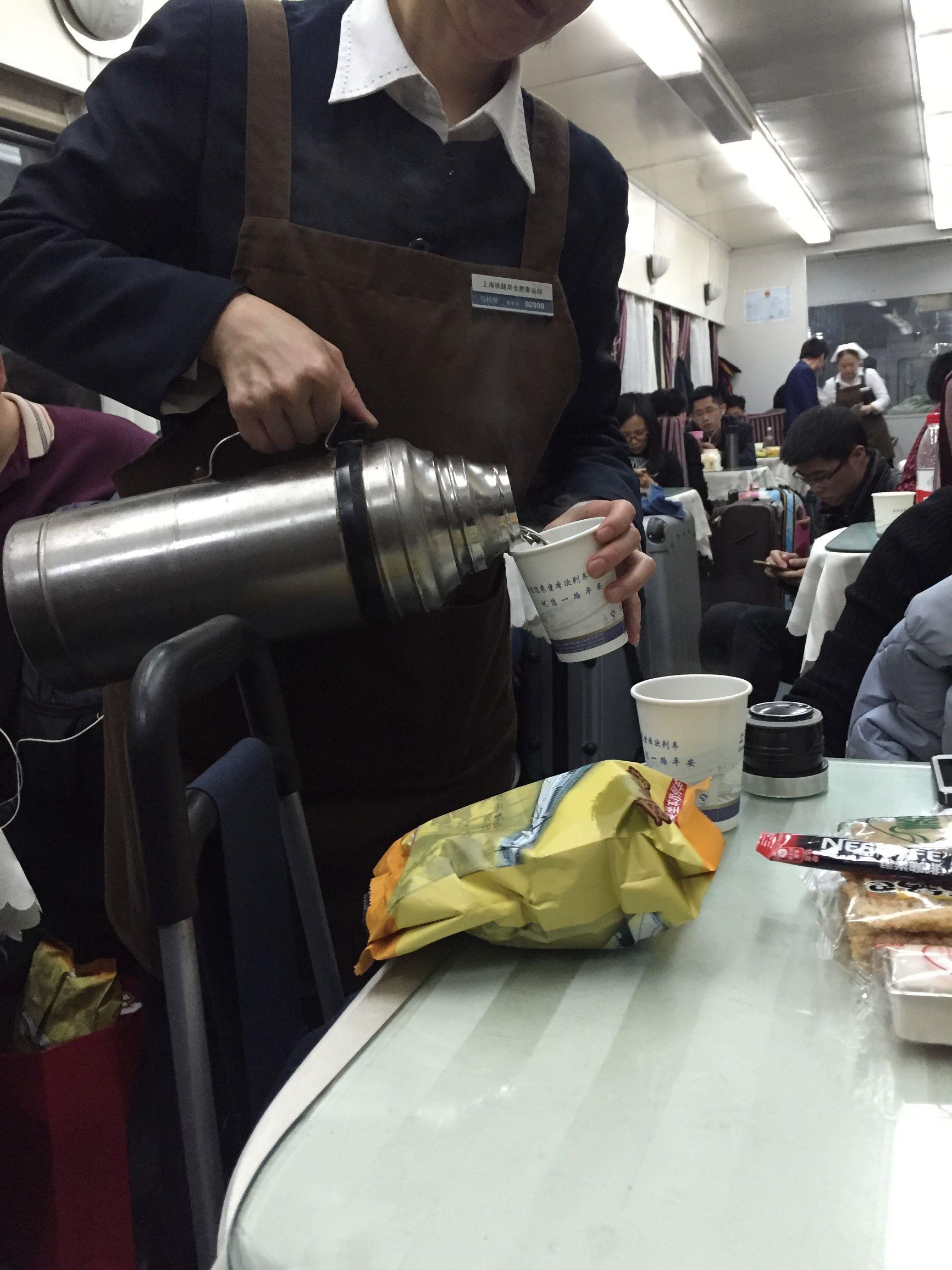等到了晚上10点左右,餐车又开始提供茶包,每人一杯茶,不是免费的奥,一个座位30元,小编被要了两份,总共60元!