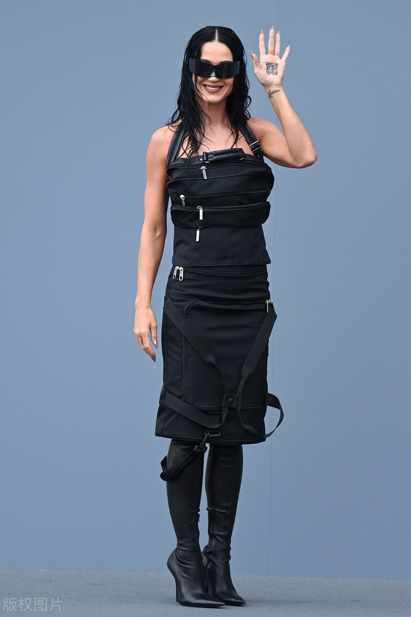 水果姐凯蒂-佩里亮相2025春夏巴黎时装周Balenciaga秀场看秀